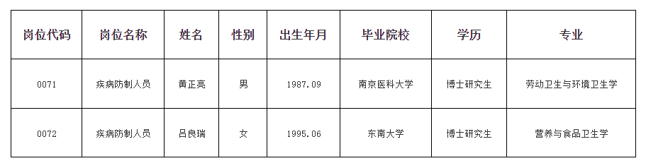 根据《2025年苏州市卫生健康系统长期公开招聘博士研究生专业技术人才公告》,经过面试、体检和考核合格,拟录用以下2名同志,现公示如下: